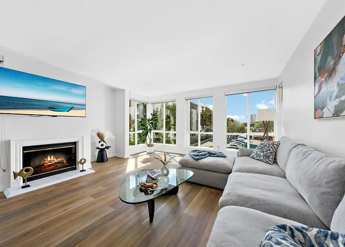 Situato nel distretto Marina Del Rey, quest'appartamento sul lungomare di 121 m² offre un rapido accesso all'aeroporto Internazionale di Los Angeles, in 15 minuti di auto. The Turquoise Lounge - Chic 2Br Beach View Pool, Sauna, un appartamento sul lungomare, è ubicato a 10 minuti in macchina dal Museo dell’Aeronautica Museum of Flying. Anche l'Abbot Kinney Boulevard si trova a una distanza di 2 km dalla struttura.